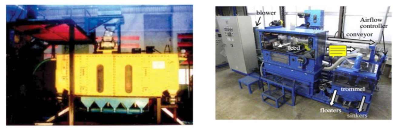 图 1 日本空气重介流化床分选机(左)和印度空气重介流化床分选机(右)